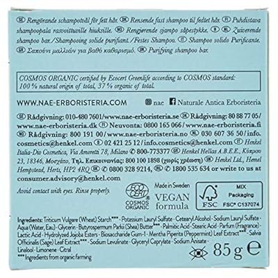 Siamo entusiasti di recensire N.A.E. Shampoo Solido per Capelli Grassi Equilibrio, Shampoo Bar Ecologico e Vegano con Estratti di Salvia e Menta Biologici, 85 gr nella categoria Shampoo solido.